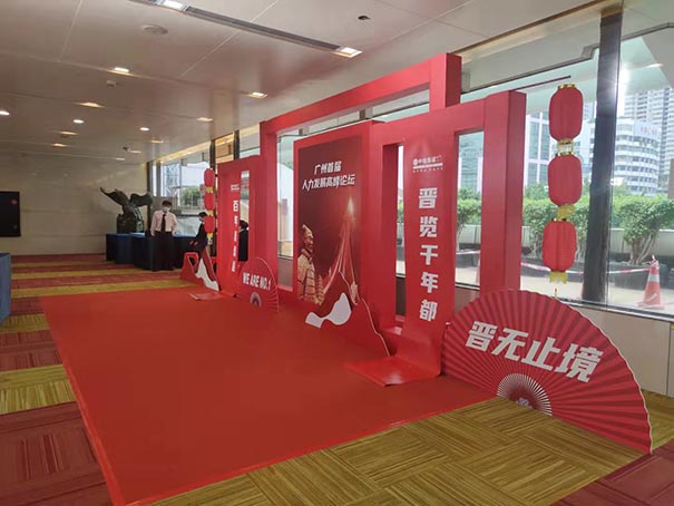 展位形式的噴繪背景展板加上紅地毯。