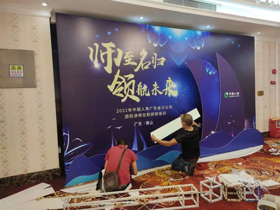 位于廣東省江門市新會(huì)區(qū)的背景板搭建。某碧桂園酒店里面。