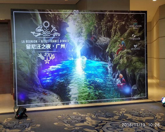 這是在陽光酒店7樓某廳里面的背景板搭建,4X2.6米左右。