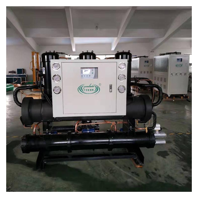 開放式冷水機(jī)主要由壓縮機(jī)、蒸發(fā)器、冷凝器、電控系統(tǒng)、冷凍配件組件,水冷箱式冷水機(jī)則由壓縮機(jī)、蒸發(fā)器、冷凝器、水泵、水箱、電控系統(tǒng)、冷凍配件組成,因此可以看出來,兩者之間的不同之處在于水冷箱式冷水機(jī)可以內(nèi)置水泵及水箱,反之則稱為開放式冷水機(jī)。