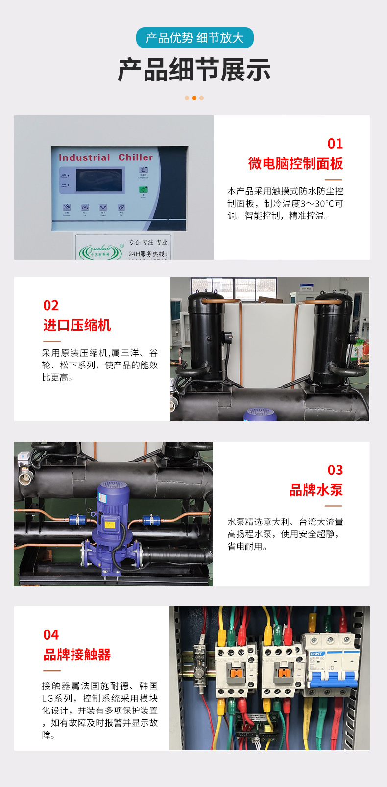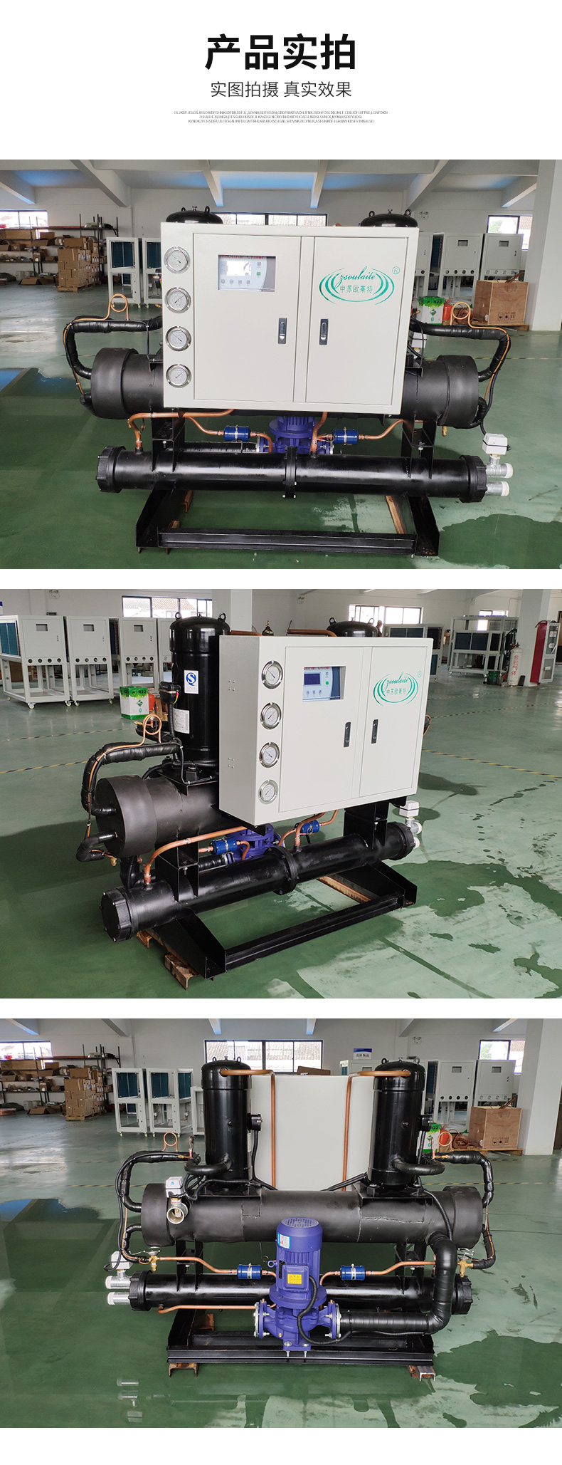 7、產(chǎn)品外觀美觀大方,結(jié)構(gòu)精致合理,尤其是殼管式冷凝器及蒸發(fā)器的搭配更是使產(chǎn)品的性能大幅度提升。
