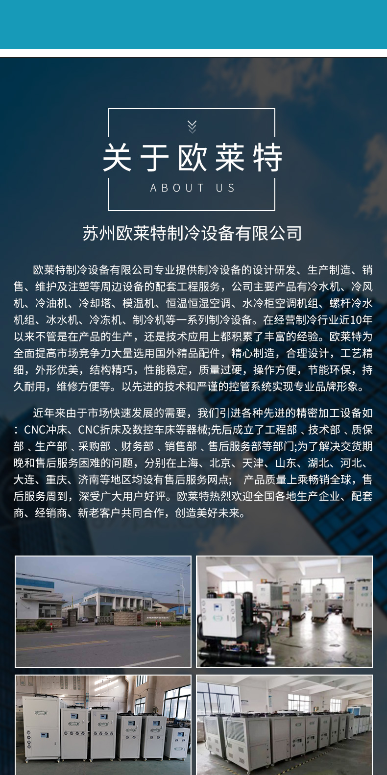 制冷設(shè)備廠家蘇州歐萊特專注生產(chǎn)工業(yè)冷水機(jī),工業(yè)冷風(fēng)機(jī),冷熱一體機(jī)組及制冷、制熱設(shè)備的設(shè)計跟研發(fā)