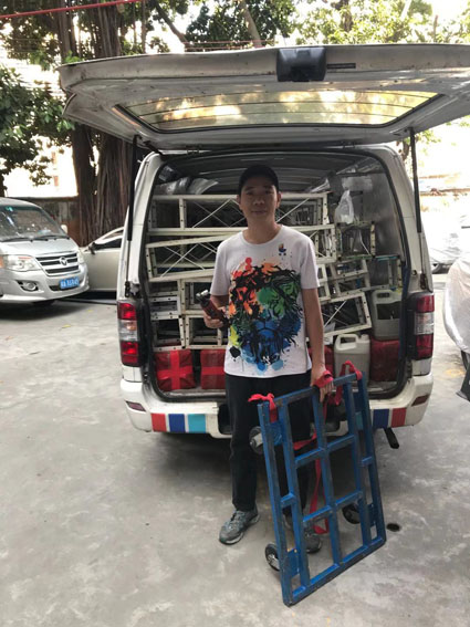 這是自制的手拉車子,可以放桁架,背景板安裝的壓重水泥石頭。平時也可以放一些紙箱推拉的,這種小車子一般適用于我們活動布置廠家,用于#廣州年會活動布置#的用途。