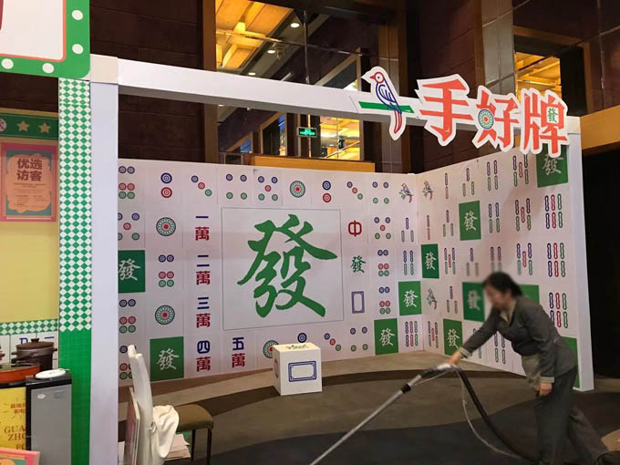 F、佛山某酒店安裝,地貼,異形展板,箱體方塊,主要是以KT板為主。以及活動物料的噴繪圓PVC杯墊+畫。