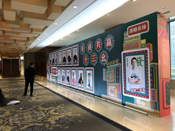 E、58同城在海航威斯汀東站這邊的三樓活動布場,背景板搭建,桁架展位安裝,噴繪舞臺二個側(cè)板等等。