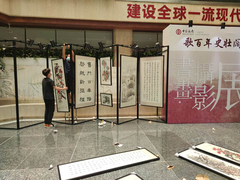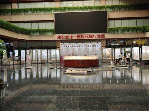 G、中國銀行位于東風(fēng)路廣東省總行,活動書畫展的展架安裝出租,背景板噴繪制作,燈光出租。