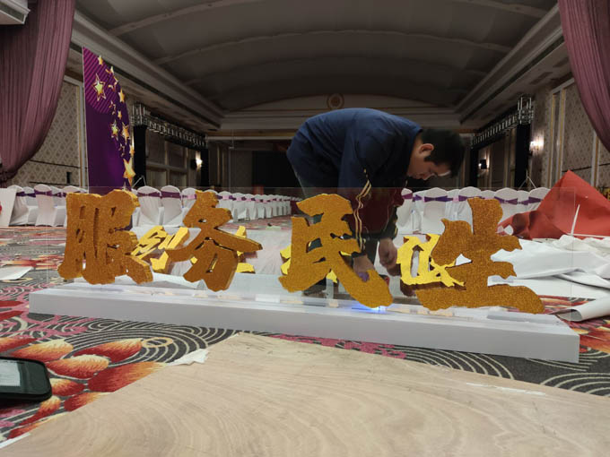 下圖:在安裝立體字,泡沫字當(dāng)中,金色的字體,非常有視覺(jué)的沖擊力。