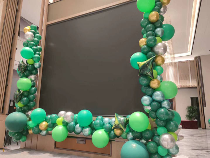 氣球裝飾工程用氣球,最好采用進(jìn)口專用氣球,以確保工程質(zhì)量,如選用一般氣球,造成氣球消氣過快,保留時(shí)間短。對(duì)于擺放時(shí)間短的工程(1--3天),可適當(dāng)選用合資氣球、國(guó)內(nèi)優(yōu)質(zhì)氣球來制作?;槎Y氣球裝飾最好采用進(jìn)口珠光球來制作。