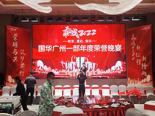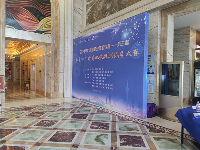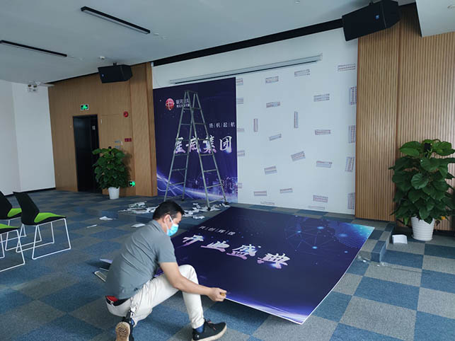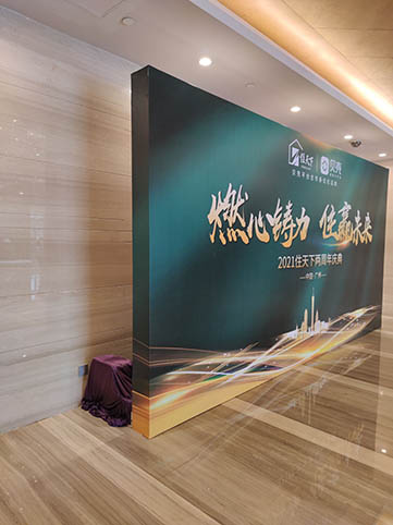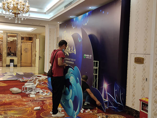 下圖:海珠廣場那里的華廈酒店簽到處背景板搭建,易拉寶制作,舞臺二個背景展板安裝。