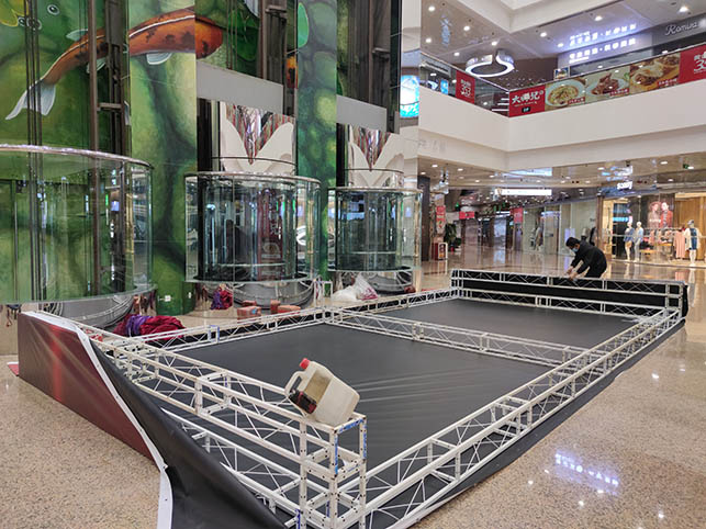 下圖:位于廣州云食城內(nèi)的背景板搭建3.5*8米,地毯前面4*8米,這樣拍相片,就可以不用超出背景板及地毯外了,省了相片做后期工作。