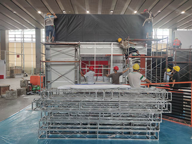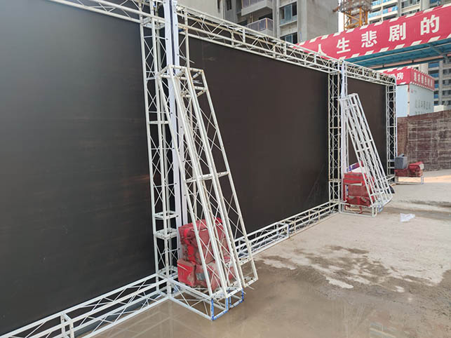 下圖:從化某工地,四個背景板搭建安裝的過程。