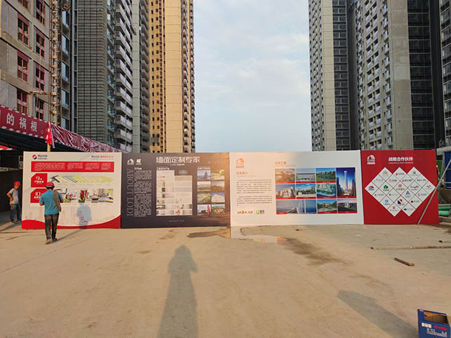 下圖:白云區(qū)某工地里面,在要交樓的前面做一個建筑施工材料展。主要還是做背景展板的搭建。
