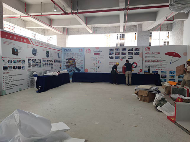 下圖:位于廣州市東風路的廣東大廈三樓,搭建背景展板,展位式的背景板安裝,貼KT板制作。這個地方的卸貨區(qū)不太合人性化,不能停稍長時間,而移車到外面可能交警抄牌。